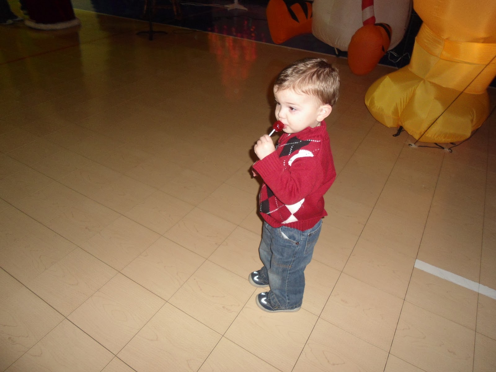 He wouldn't go anywhere near Santa, but he did say, "Thank you" for the candy cane. :)